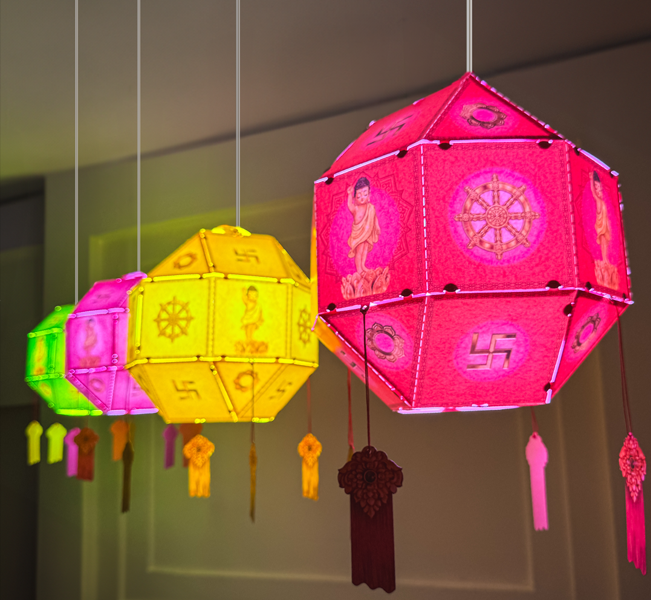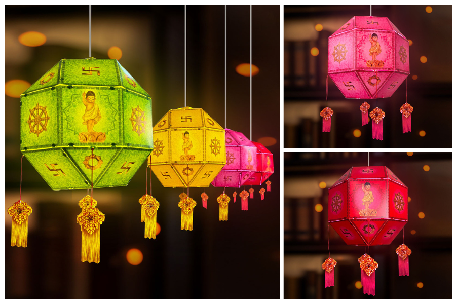 An lạc không nằm ở nơi nào đó quá xa vời, an lạc luôn hiện hữu trong ta, là những gì ta thấy và cả những việc ta làm. Cũng như việc ta tỉ mẩn lắp ráp một chiếc lồng đèn Phật Đản, thắp sáng và nhìn ngắm chúng, có lẽ cũng đã đủ để tâm hồn trở nên thật bình yên. Hãy để TAYTA cùng bạn chào mừng Đại Lễ theo cách nhẹ nhàng và ý nghĩa cùng với mẫu lồng đèn bát giác trang trí Phật Đản này nhé!