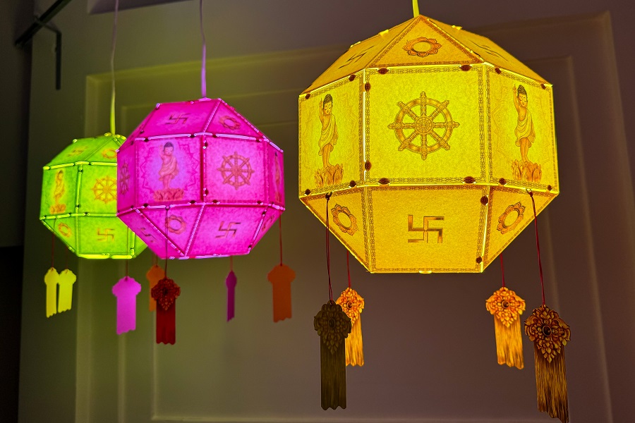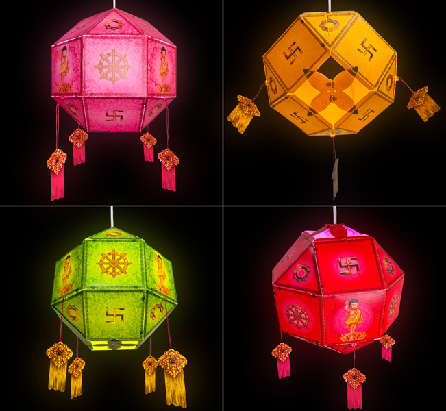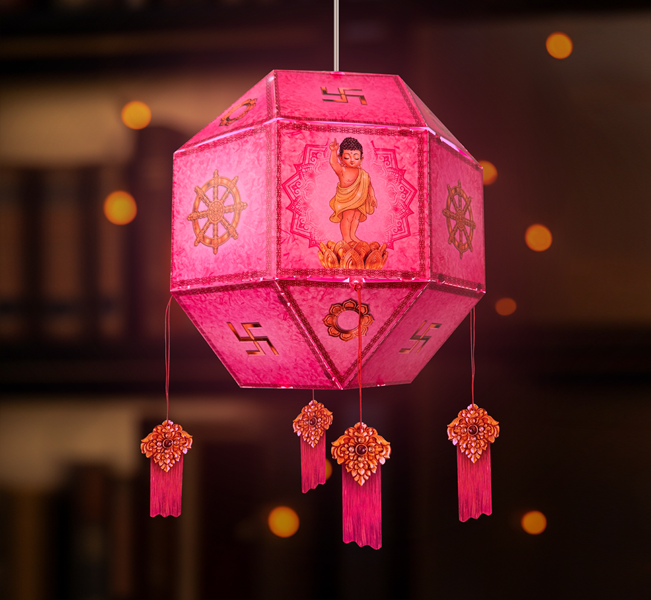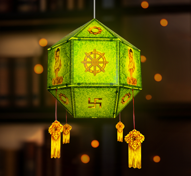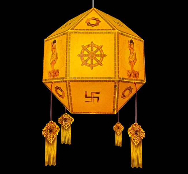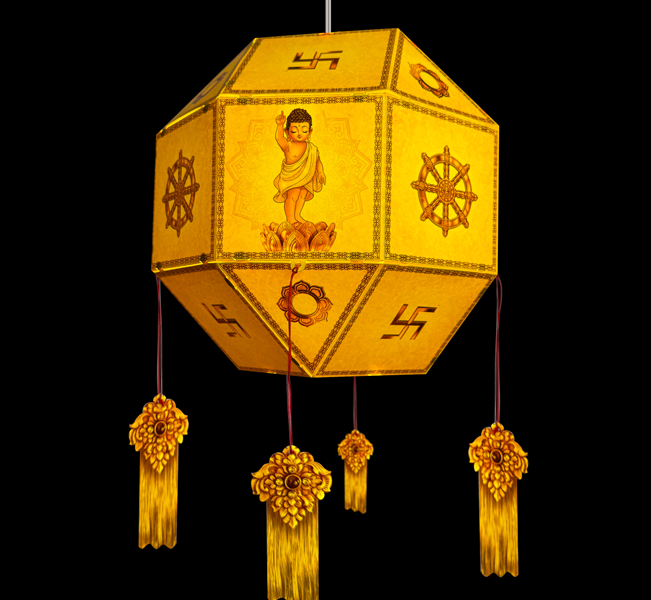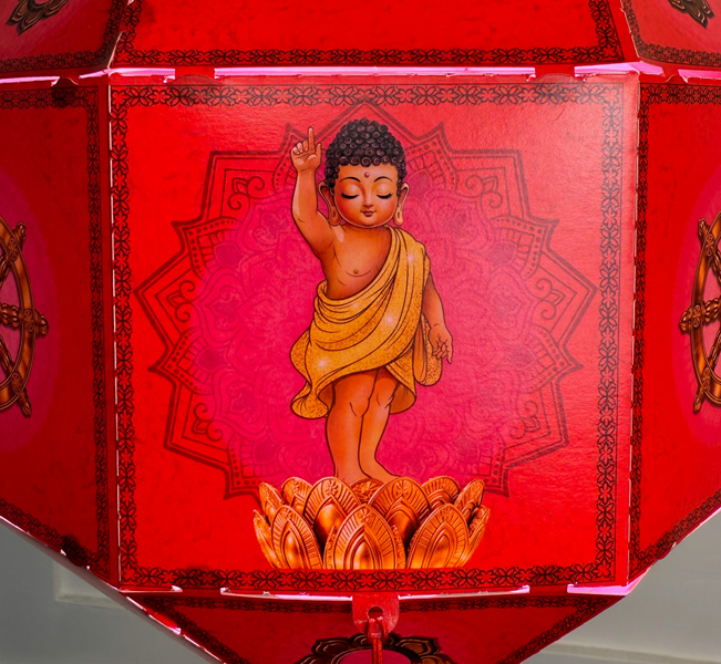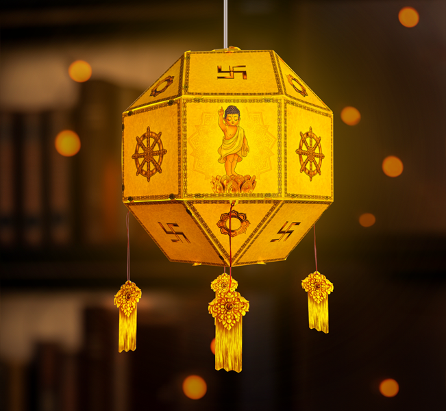 Ảnh: Lồng Đèn với hình dáng bát giác (8 cạnh) phối cùng họa tiết Phật Giáo ý nghĩa