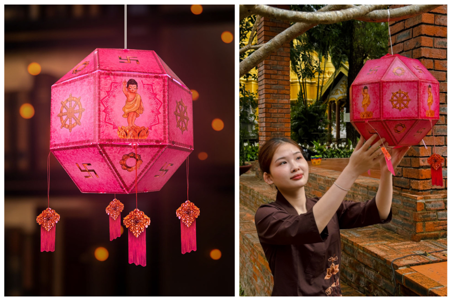 Điểm nhấn của chiếc lồng đèn mới toanh này còn nằm ở họa tiết được in trên các mảnh ghép. Ngoài hình vẽ Đức Phật do chính TAYTA thiết kế, đèn lồng bát giác kết hợp hoa văn Phật Giáo và chữ Vạn - Vừa thể hiện được vẻ đẹp của các hình tượng trong Phật Giáo, vừa đề cao được các yếu tố bản sắc của dân tộc và hơn hết là tất cả đều hội tụ trên một chiếc lồng đèn có hình dáng thật sự lạ mắt.