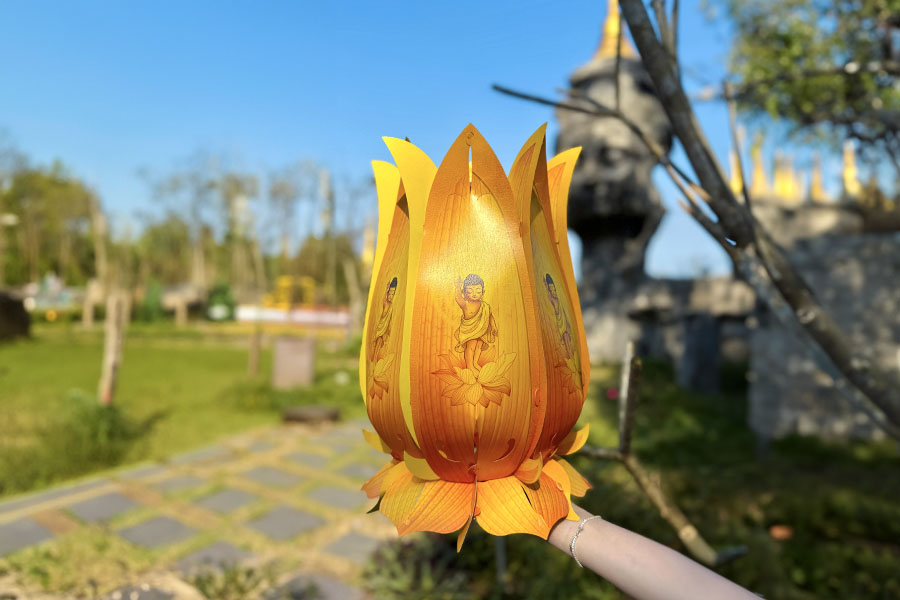 Mẫu lồng đèn hoa sen lục bình nhận được sự yêu thích của quý Tăng Ni, Phật Tử nhờ hình dáng cách điệu và ý nghĩa sâu sắc