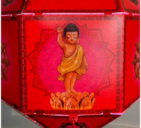 Ảnh: Hình Phật vẽ tay đẹp sắc nét phối hợp khéo léo với các họa tiết Phật Giáo giúp chiếc lồng đèn đẹp hoàn hảo ở mọi góc nhìn
