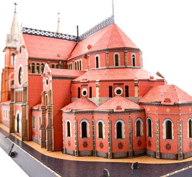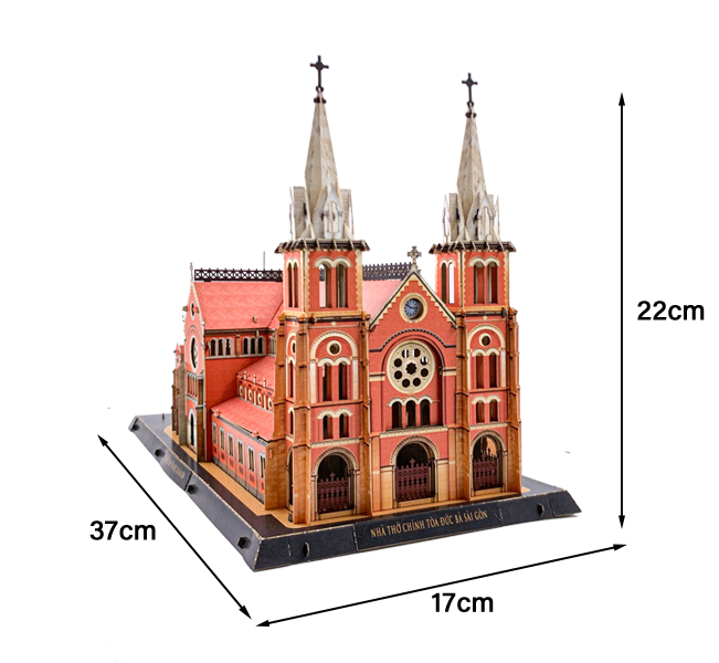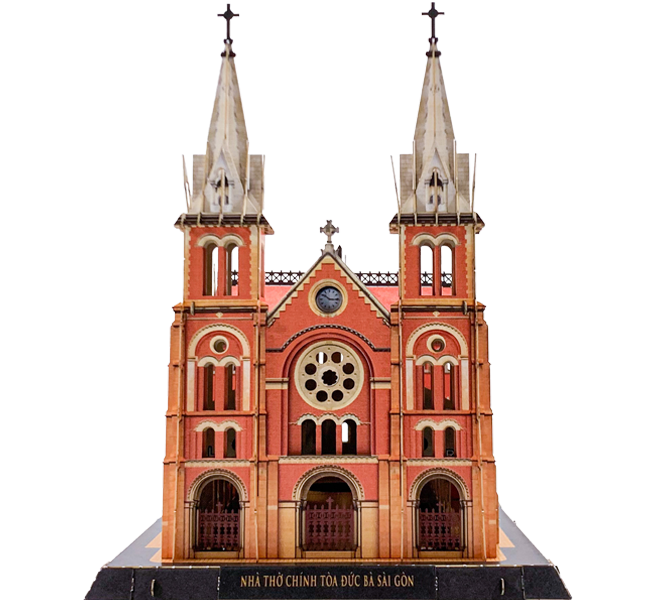 - Đặc điểm nổi bật: bạn có thể tự tay lắp ráp Mô hình giấy 3D Nhà thờ Đức Bà Sài Gòn với nhiều chi tiết tỉ mỉ và màu sắc vô cùng đẹp mắt. Sau đó có thể trưng bày Mô hình ở nhiều góc decor trong nhà, hoặc làm quà tặng độc đáo và ý nghĩa cho những người thân yêu trong nhiều dịp đặc biệt.