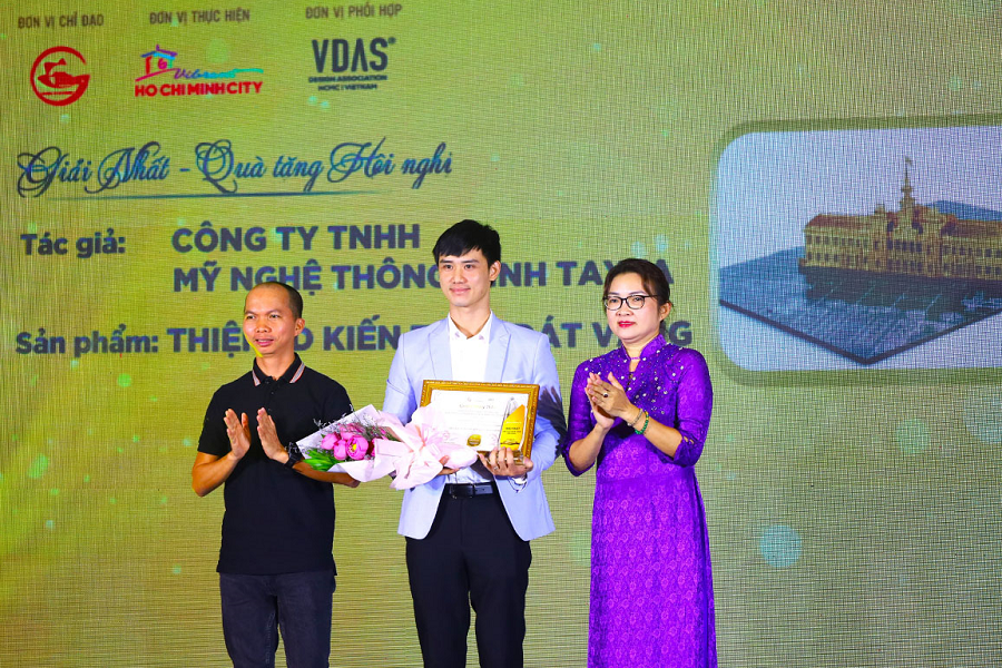 Được tổ chức bởi Sở Du lịch TP.HCM - đơn vị đứng đầu ngành Du lịch, có vai trò bảo tồn và phát huy các giá trị văn hóa, lịch sử của thành phố, thúc đẩy ngành Du lịch của TP và Hội Thiết kế TP. HCM (VDAS), cuộc thi thu hút nhiều bài dự thi của các cá nhân, tập thể. Với kinh nghiệm sản xuất thiệp 3D/ mô hình 3D, TAYTA mang đến cuộc thi một sản phẩm “quen mà lạ” - Thiệp 3D Kiến Trúc Dát Vàng. Mẫu thiệp đã chinh phục Ban Giám Khảo và vượt qua hơn 120 bài dự thi để giành được Giải Nhất ở hạng mục Quà Tặng Hội Nghị bởi những chi tiết đắt giá mà không phải món quà lưu niệm nào cũng có được.