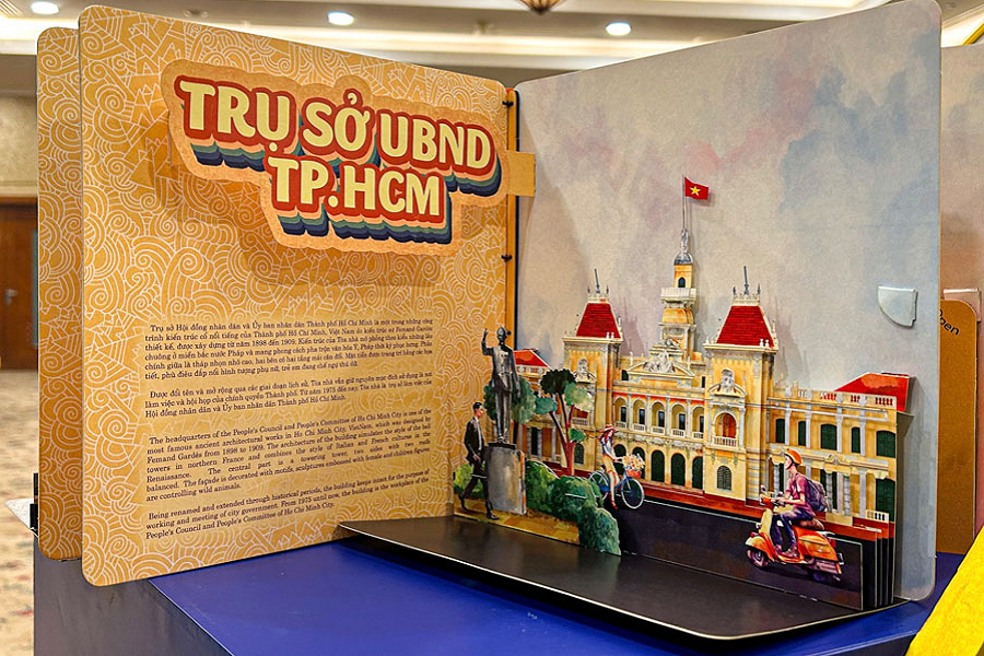 Ảnh: Ngoài thiệp 3D Kiến Trúc Dát Vàng, sản phẩm Sài Gòn Popup 90 độ - tổng hợp các địa danh nổi tiếng tại TP.HCM cũng đạt giải Khuyến khích tại cuộc thi