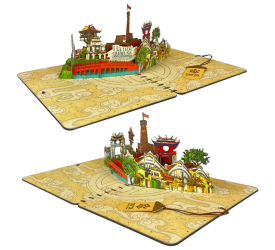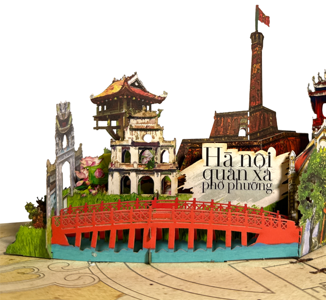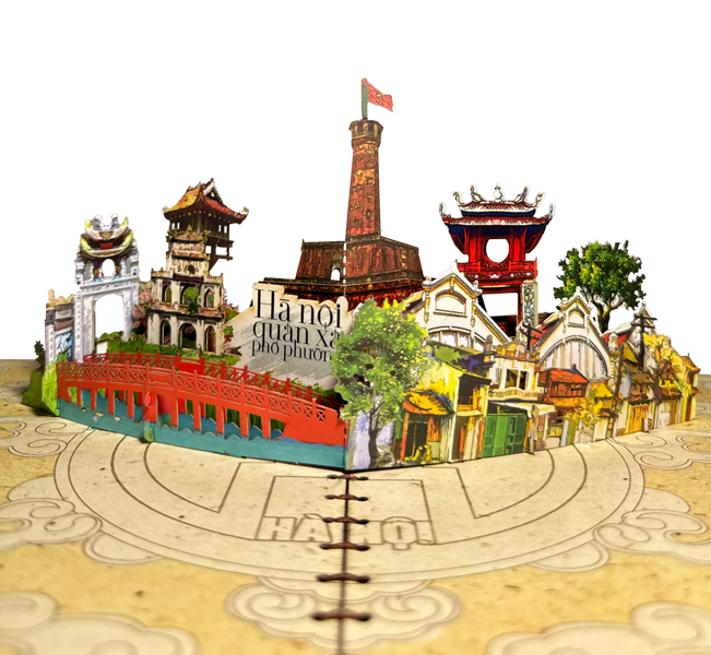 TAYTA giới thiệu đến bạn quà tặng Thiệp 3D Popup về Hà Nội quán xá phố phường với 5 lớp giấy hình ảnh về các địa danh nổi tiếng đất Kinh Đô như: Khuê Văn Các, Tháp Rùa, Chùa Một Cột, cầu Thê Húc, phố cổ Hà Nội,…