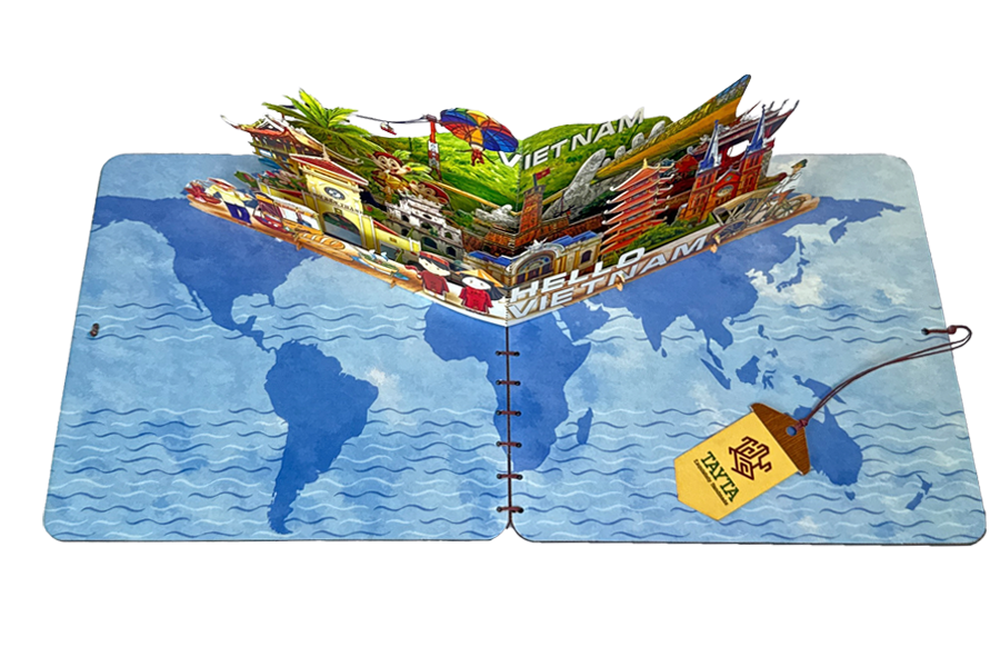 - Thiệp 3D - Popup Hello Vietnam Tayta thích hợp làm quà tặng cho bạn bè, người thân, cấp trên, đối tác,…đặc biệt là các vị khách, bạn bè ở nước ngoài,…giúp thể hiện đặc trưng văn hoá kiến trúc của đất nước Việt Nam đến với Quốc tế một cách dễ dàng và độc đáo.
