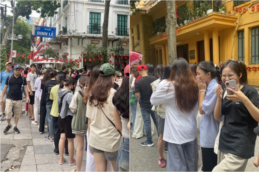 Ảnh: Đông đảo các bạn trẻ xếp hàng chờ đợi từ sáng sớm tại Bưu Điện Bờ Hồ TP. Hà Nội để mua được