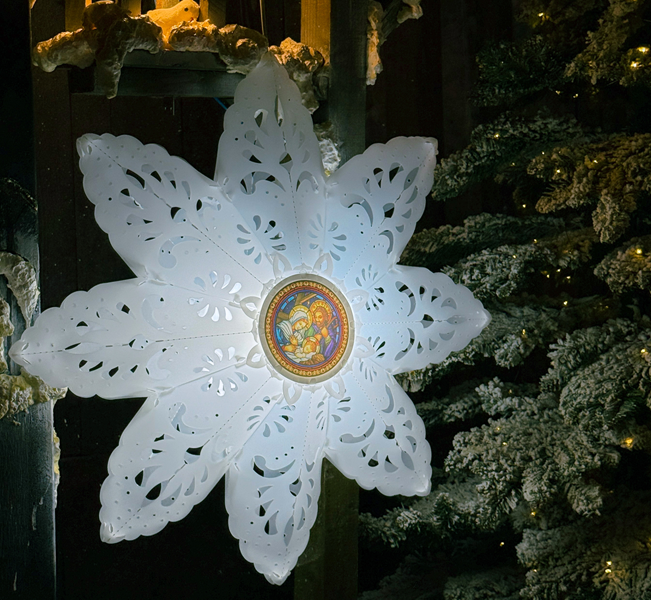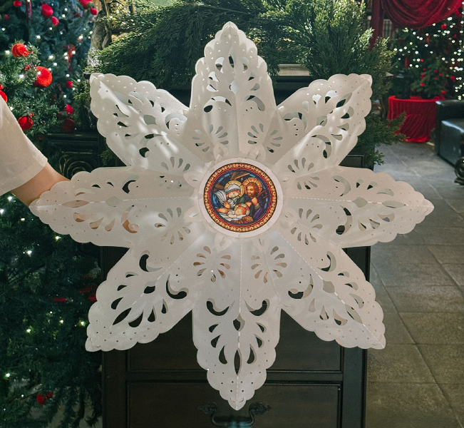 - Trọn bộ sản phẩm bao gồm:16 cánh lồng đèn + 2 ảnh tròn hình Chúa Giáng Sinh + các khớp nối. (sản phẩm không bao gồm Đèn led đi cùng, khách hàng có thể mua đèn theo ý thích để trang trí phù hợp với ngôi nhà của bạn)