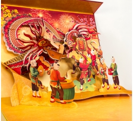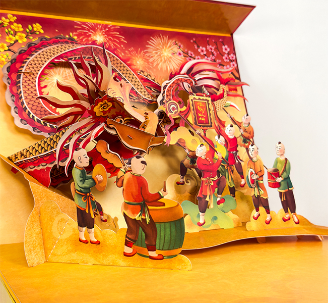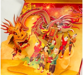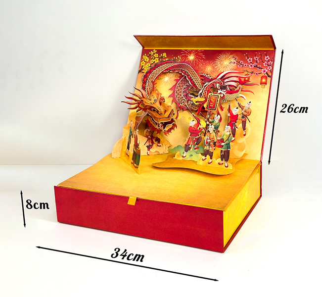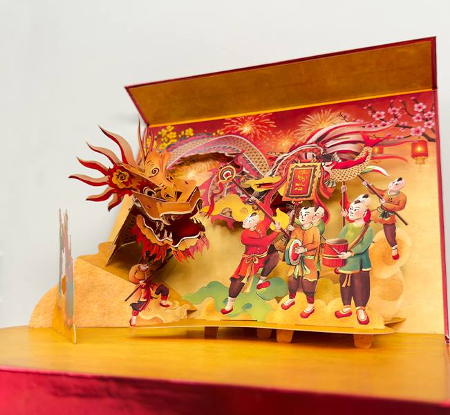 Quà Tết chỉn chu và sang trọng hơn với thiết kế Hộp Quà 3D Popup TAYTA - Hình ảnh Tết Việt Nam đầy màu sắc với đoàn múa Rồng được TAYTA thể hiện sinh động qua khối 3D cầu kỳ.