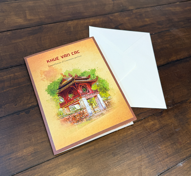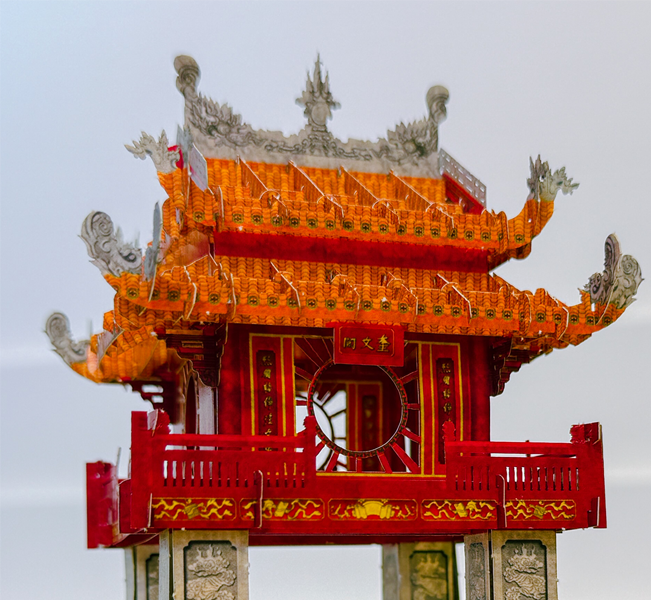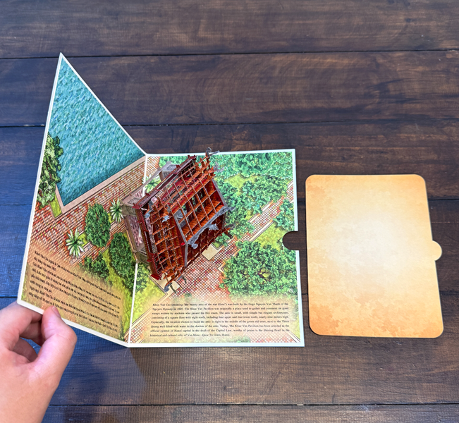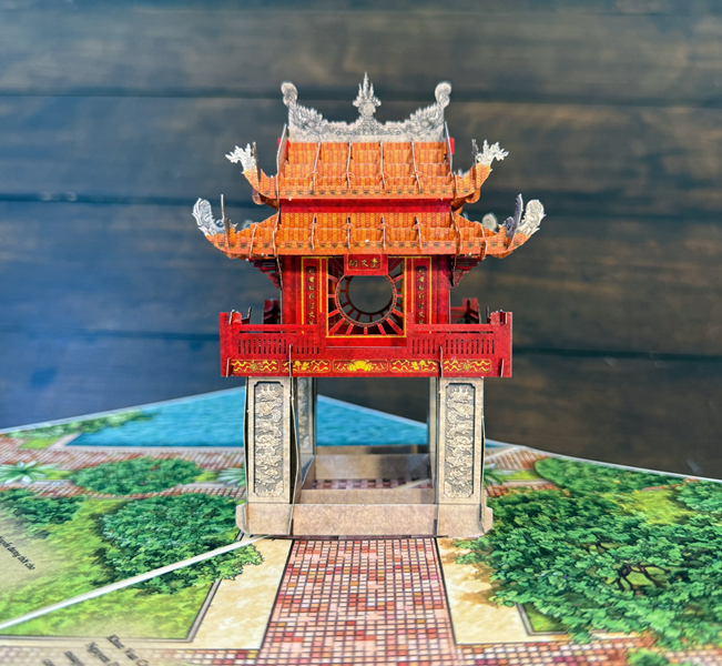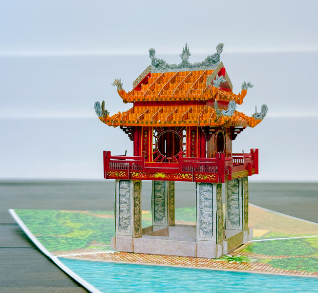 Thiệp 3D Khuê Văn Các size A5 được TAYTA thực hiện là sản phẩm tái hiện tỉ mỉ vẻ đẹp độc đáo của công trình nổi tiếng này. Hơn hết, mô hình nằm gọn trong tấm bìa size A5 tiện lợi khi vận chuyển, là món quà lưu niệm nhỏ để gợi nhớ về một công trình cổ nổi tiếng của đất nước.