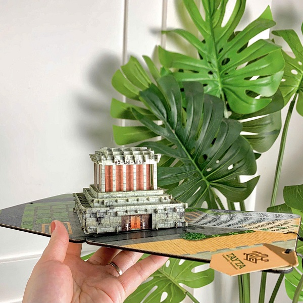 Thiệp 3D Lăng Bác nổi bật với phần mô hình 3D kiến trúc đẹp từng mm nằm bên trong tấm bìa gỗ sang trọng.