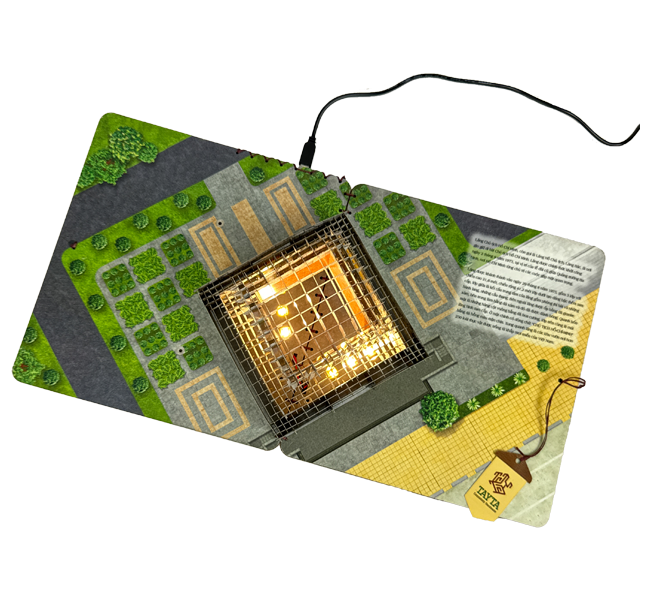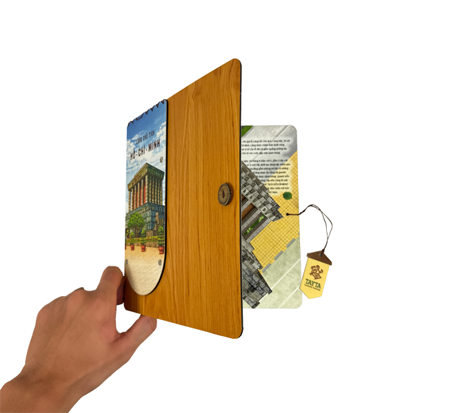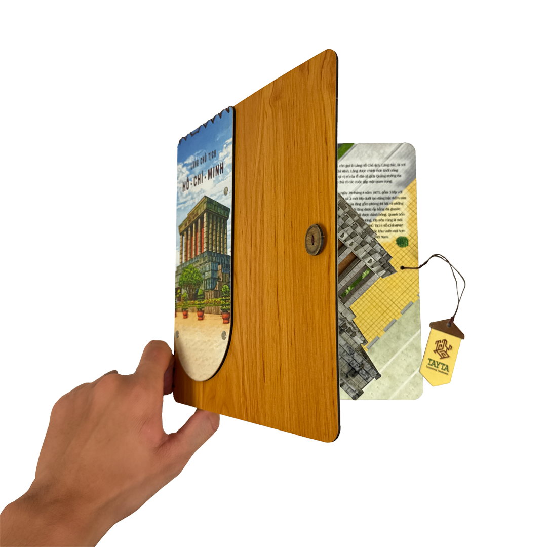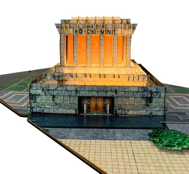 - Chất liệu: bìa gỗ MDF 1.5li, mô hình bằng giấy kraft dày 250 gsm in màu kỹ thuật số